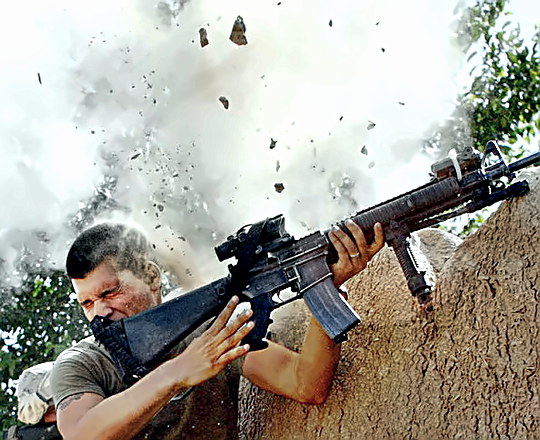 A soldier weeps at the death of a buddy and is comforted by another. We called it
